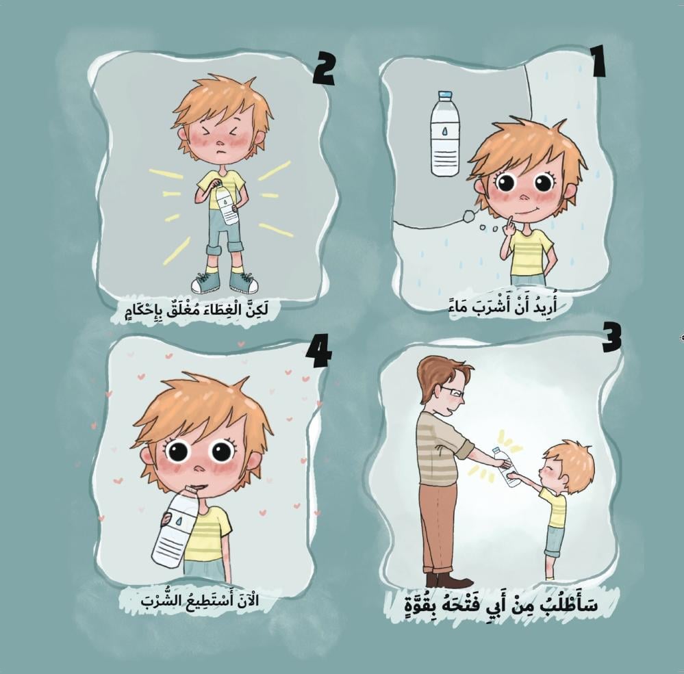 فبعد أن استطاع الطفل طلب أشياء مختلفة يريدها بواسطة استخدام مسميات الأشياء وتطورت قدرته لفهم اللغة قد يواجه بعض المعوقات التي تحول بينه وبين ما يريد لذا جمعت لكم بهده القصة عدة سيناريوهات منوعة من باب تطوير قدرة الطفل على حل المشكلات البسيطة وتطوير قدرته على استعمال الصفات والأفعال المختلفة في اللغة وفي نهاية كل قصة وضعت عدة أسئلة ستساعدكم في شرح القصة لطفلكم وستساعدكم بتدريب طفلكم على مهارة حل الأسئلة الاستفهامية